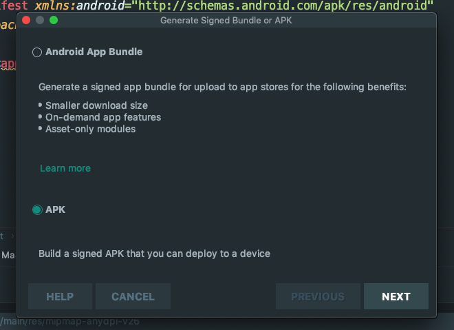Generate an APK bundle by going to build>generate signed bundle/APK