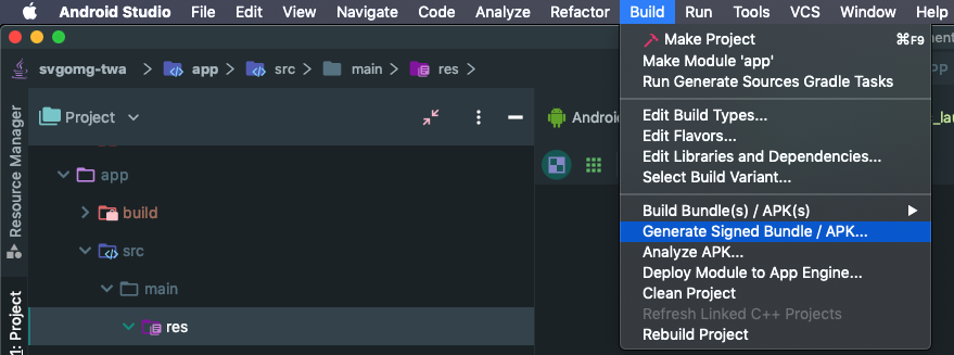 Clone the TWA Github repo to get the boilerplate code needed for your TWA on https://github.com/GoogleChromeLabs/svgomg-twa