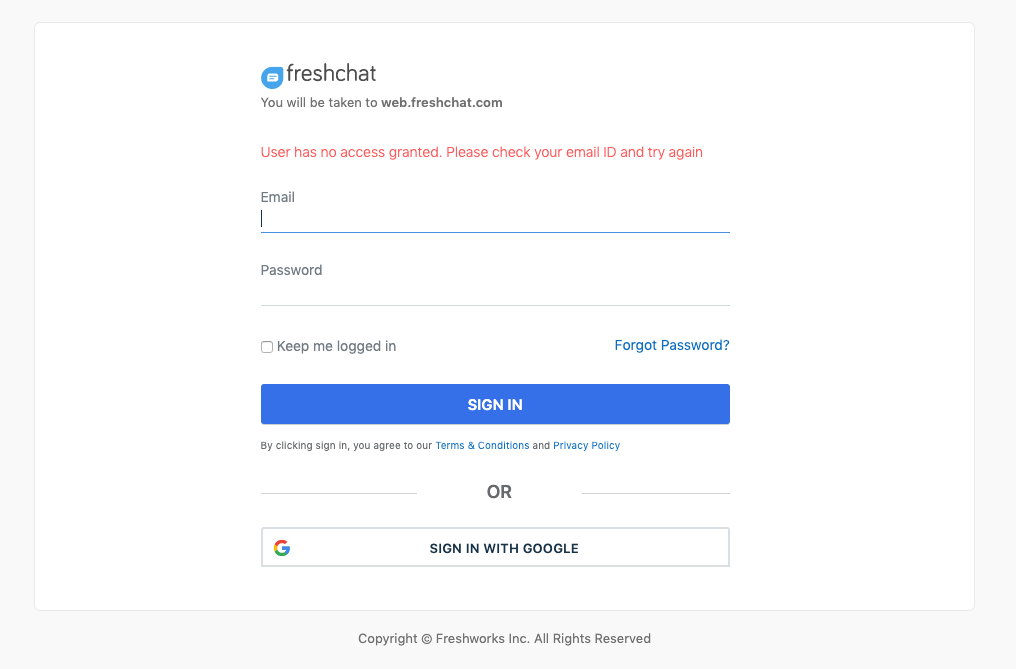 Verdict: Usable, but not recommended. The Freshworks product line is spread over multiple domains, the initial setup is confusing, and the default settings need to be changed heavily to enable chat use. The web client has no-built in audible/visible notification when a new message is received.