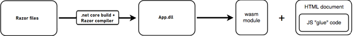 To add to this, blazor compiles code to .dll files before converting them to web assembly, so when we use something like blazor, the full process would look like this: