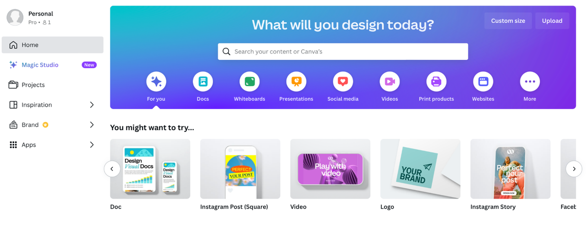 Canva is an online graphic design tool with a user-friendly interface, making design accessible to everyone, regardless of their skill level. The web app shines with a vast library of templates that users can easily customise, images, and design elements, organised intuitively for easy navigation. Canva’s design encourages creativity and experimentation, supported by a straightforward flow that guides users through the design process without overwhelming them.