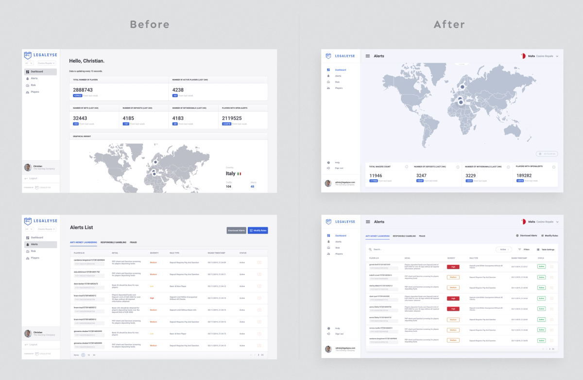 Legaleyse tackles the complex challenge of regulatory compliance in the iGaming sector with a robust real-time monitoring platform. Addressing initial drawbacks like slow performance and UX/UI inconsistencies, the platform underwent a design overhaul to optimise load times and create a mobile-friendly experience.